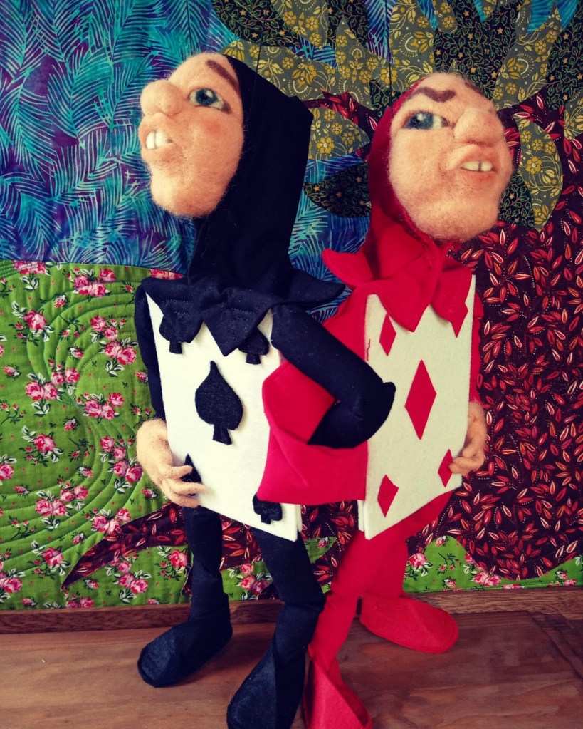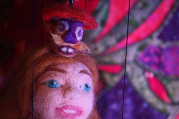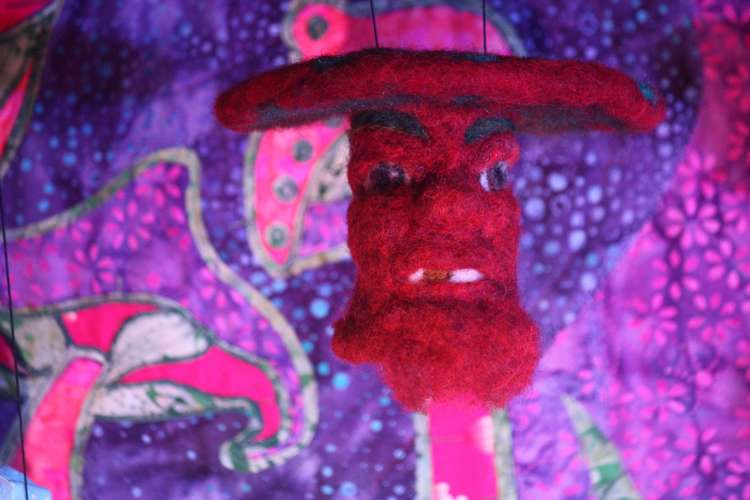 Marionnettes à fils en tissu et laine feutrée (sculptées par feutrage à l’aiguille).